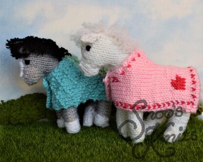 Keep a toy horse warm with one of these pretty rugs. They will fit the Snoo’s Knits horse pattern or an old-style My Little Pony. For larger horses, try knitting with chunkier wool to produce a bigger rug.