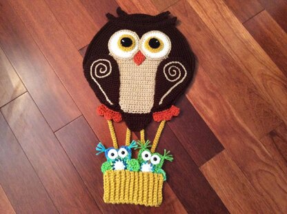 Hot Air Balloon Owl Wall hanging or blanket applique