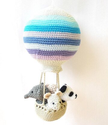 Create your own hot air balloon decoration with this simple crochet pattern. These adorable amigurumi animals in a hot air balloon would be perfect for either a baby girl or a baby boy's nursery.