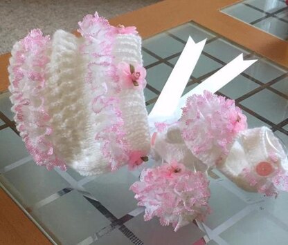 A very easy pattern to knit done using 2 needles beautiful tuck edge lacy shoes with a matching bonnet