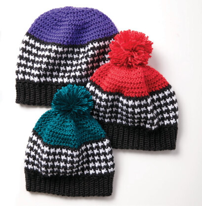 Houndstooth Bright Hat in Caron Simply Soft - Downloadable PDF