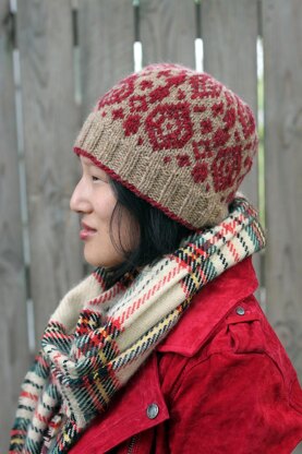 House Lannister Hat is a loose-fitting two-color stranded hat that comes in three sizes. Instructions are provided for both a beanie and a longer slouchy hat. The pattern includes charts for the body of the hat and the crown decreases. The hat works up quickly in aran weight yarn. You’ll have plenty of time to finish before winter comes. This pattern was tech-edited by Jean Clement (desertroseknits) and test-knit.