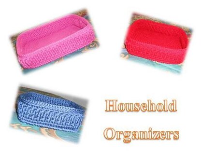 Keep do-dads from rolling around your kitchen "junk" drawer or use in your dresser drawers to keep your socks and unmentionables separate, clean and in one place. Sizes can easily be adjusted by changing size of hook or yarn.