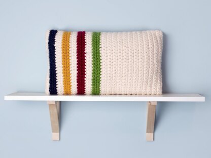Our Classic Canadian Hudson Bay inspired pillow gives such a cozy feeling to any room in the house. It reminds me of a cozy log cabin with a fire going in the wood stove. The chunky yarn makes this is a quick project.