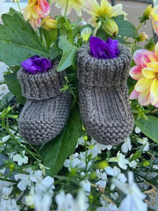 Keep those tiny feet warm and kicking in these quick-knit booties. Knit flat with a seam up the back, you probably have enough worsted weight yarn in your stash! (See "Huggable Booties" in my store - also free - for the DK version.) Makes a welcome and personal baby shower gift.