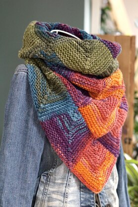 Für diesen Cowl wird ein Quadrat nach dem anderen aneinander gestrickt. Dafür sind Sockennadeln ausreichend, falls man nicht mit der Rundnadel hantieren möchte.