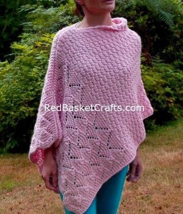 An asymmetric wrap in shell and textured stitches. RECOMMENDED YARN: Debbie Bliss Merion bulky (109yds/100m per skein): 5 skeins for size S/M and 6 skeins for size L/XL. Substitute yarn: Wool/alpaca or wool/acrylic bulky-weight yarn, above yardage.
