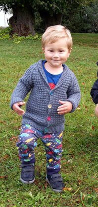 Knitted seamlessly from the top down, the cardigan has an all-over textured pattern which adds interest and warmth to a classic shawl collar cardigan. There are two options for the collar, the original slimmer version and a wider classic version.