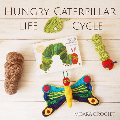 Crochet Caterpillar Life Cycle Play set pattern inspired by Eric Carls 'The Very Hungry Caterpillar'.