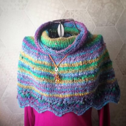This cape is designed to be a simple and easy project. Worked in the round, it grows very fast. Completely seamless.