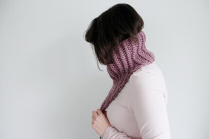HYBRID collar is a very functional winter accessorize inspired by a loop scarf and a triangular shawl. It was designed especially for V-neck coats but is also very good to wear with other jacket types. The loop part is very close-fitting on the neck and the triangular part covers the V-neck. The texture is minimalistic and made of 1x1 ripping with twisted stitches. Only one ball of a Super Bulky yarn is needed to make this cozy collar. Thanks to the chunky yarn and big size needles the accessorize can be finished within few hours.