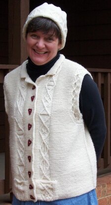 The cap is one size fits all -- a great place to practice chart reading before working on the vest. There are six different diamonds reminiscent of Austrian/Bavarian knitting. The cap is wonderfully warm since the 2-1/2" cuff is backed with a 3x3rib to ensure a