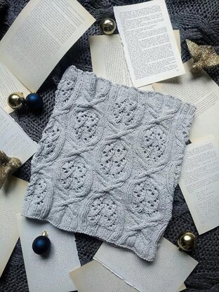Hoping for a snowy winter, I knitted a cowl with what seems like falling snowflakes.