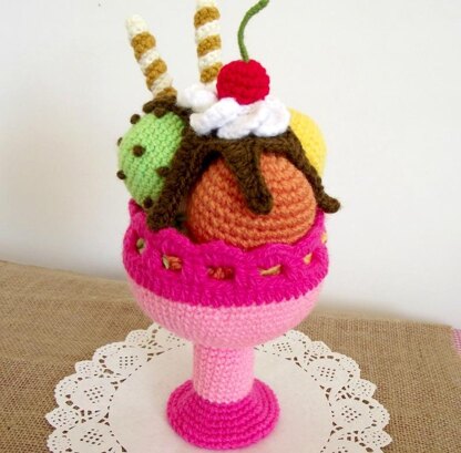 You will love to crochet this Ice Cream Sundae food amigurumi, is easy and great for all beginners, is so cute that you ca use it to embellishment your craft room, table or use as toy for your children. Pattern include step by step instructions to crochet each piece on how to assambly the ice cream too.