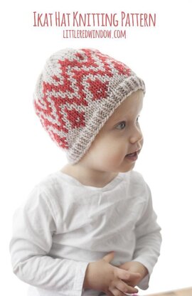 Ikat is so hot right now and this cute Ikat hat knitting pattern is no exception! This fun fair isle baby hat knitting pattern is a quick and easy knit and includes instructions for knitting an ikat hat in the round in four sizes! Basic knowledge of stranded or fair isle knitting is required but this pattern is fun and easy!