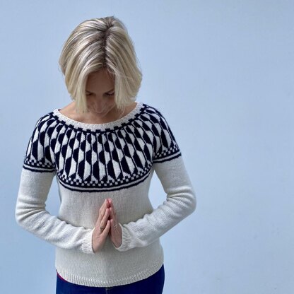Imagine All The People is a top down, seamless knit, with a simple colourwork chart. An optional colourwork band adds emphasis at the hem.