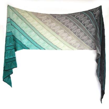 Let Inara be the blank slate on which you paint your own personality. Select two sets of gradient yarns for a rich ombre, or mix and and match from your stash for a roadmap of your favourite tones. Diagonal columns of alternating lace and garter stitch make a strong statement without being intimidating. Included is a schematic to colour in to play with your colour scheme. Worked end to end, this long wrap can easily be shortened with fewer repeats of the pattern sequence, instructions are given for 3 lengths, with both written and charted instructions included for the lace section.