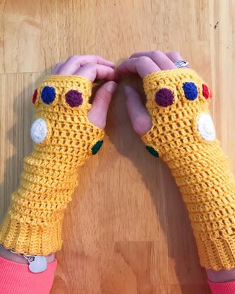 Crochet a beautiful and warm pair of Infinity Gauntlet Fingerless Gloves, a simple and fun pattern to make. This has been designed for stash-busting, using Double Knit Acrylic Yarn. Pattern includes written instructions and reference photos.
