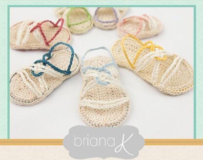 Little feet and tiny piggies!!! Is there anything cuter than adorable little ones in summer crochet sandals?! I wanted to create a pattern that really shows of those adorable toes. The infinity sandal has lots of straps to secure the sandal to the feet and lots of pictures instructions in the pattern for stress free crocheting.
