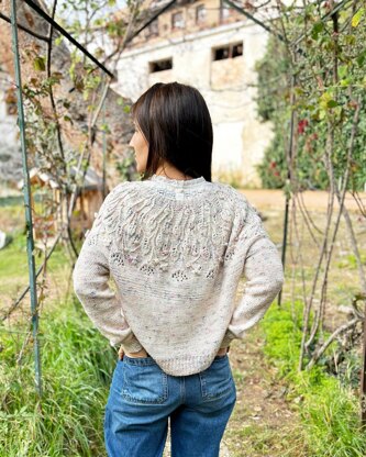 The sweater has a seamless raglan construction and is worked from top to bottom. Once the yoke is knitted, the body and then the sleeves are worked separately.