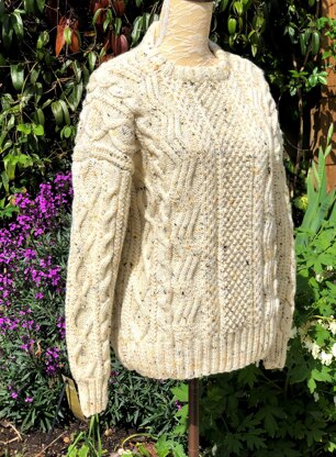 A gorgeous, traditional Aran design with stitchery that will reward you with a sweater that will never date, and will show off your knitting talents. Named after the largest Aran island in Galway Bay on the west coast of Ireland.