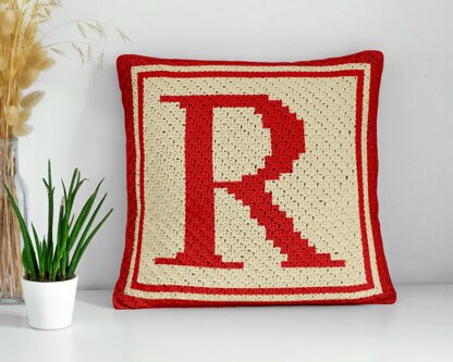 Initial Letter R Pillow Mini C2C Crochet Pattern Alphabet Name Bordered Cushion