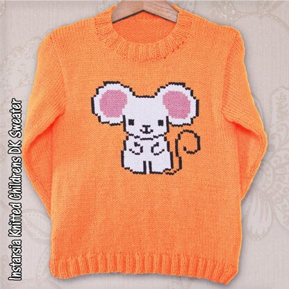 A picture of a rat or mouse, a cute animal sweater inspired by the Chinese zodiac. Pattern includes chart for the image and written instructions for the sweater. I recommend using intarsia technique for the block colours and duplicate stitching the details.