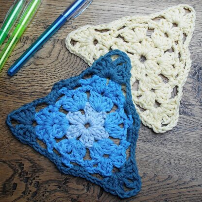 Designed to celebrate International Crochet Day. It is a lovely triangle motif, ideal for a blanket. It is 15 cm (6 in) along each side in aran yarn with a 5mm hook, but can be made in any weight yarn (suggestions for yarn weight and hook size are included). It is written in one continuous yarn but can be adapted to a different colour each round.It is written in English and US crochet terms, and is charted.