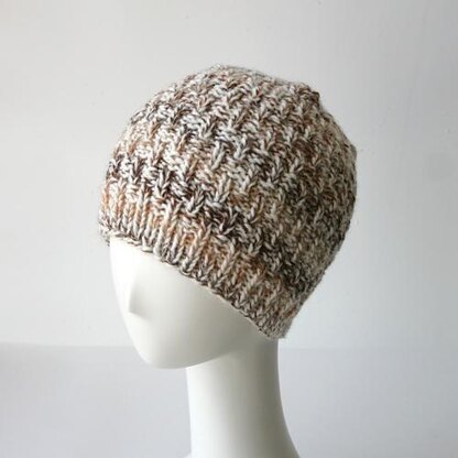 A simple basketweave hat that can be easily adjusted.