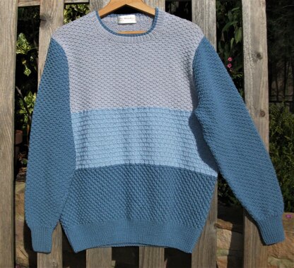 A classic shape, easy-to-wear unisex sweater in 3 different shades and 3 different stitches. Have fun with colour combinations!