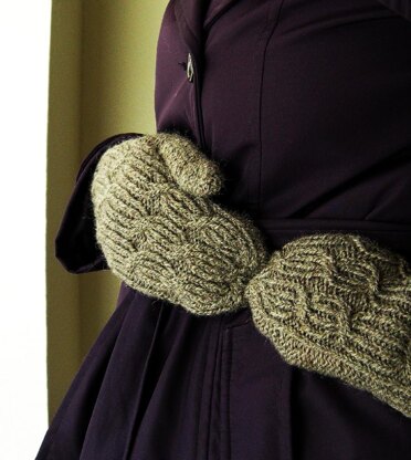 Required Skills: The mitten is worked in the round from the wrist up. THe stitch pattern uses twisted stitches, as well as cable crossings. The mitten top is closed using the Kitchener Stitch, a technique not explained in the pattern. All of the directions are written. Both the main cable pattern and the mitten tops are charted. The pattern does not recommend a particular method for knitting small circumferences in the round.