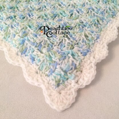 The design is written in English with standard U.S. terminology. The baby afghan crochet pattern includes a list of materials needed, crochet abbreviations for the stitches used, plus full instructions on how to crochet each row plus the decorative edging. An understanding of basic crochet stitching is required. The pattern comes in Adobe Reader format (.pdf).