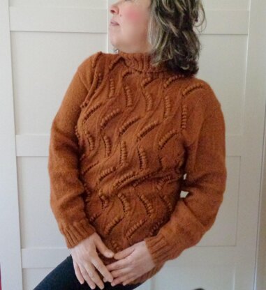 Irina Sweater is worked from the bottom-up, in separate pieces that are seamed together.