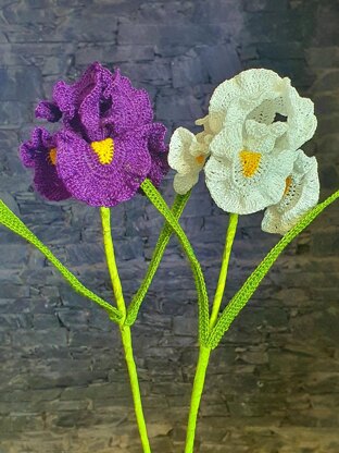 PDF pattern for crochet iris long stem home decor or gifting. long bearded iris flower purple. The pattern includes step by step instruction with pictures for each crocheted part as well as for assembly of the flower. Very easy to follow pattern with pictures. There is one 14 page PDF with pictures for ease of understanding. The pattern uses size 8 pearl cotton thread. You can use different colors for a completely different look. If you have any problem using or reading this pattern please feel free to contact me I will be more than happy to help.