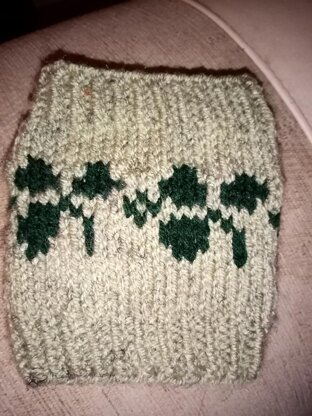 A quick easy knit. Perfect for gifting to teachers for their coffee cups or for yourself on the go. Keep your hot drinks hot or your hands comfortable from cold cans. This one is blessed with Irish love for St. Patrick’s Day