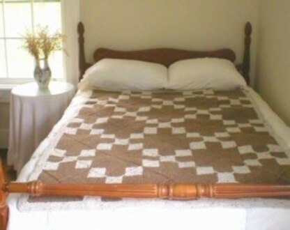 **About the Design: ** This afghan is styled after the traditional Irish Chain quilt pattern, but with traveling stitches cross-hatching the garter stitch background. This adds visual interest and makes it more interesting to knit.
