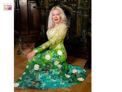 Modern crochet Irish lace pattern . A detailed pattern for all crochet motifs - a graphic diagram, a photo and a verbal description of each crochet row. Design work by Starostina Olga.