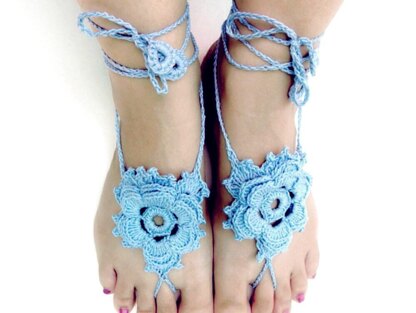 PDF pattern for crochet barefoot sandals beach wedding slippers nude sandals for RIGHT handed crocheters. Very easy to follow pattern with 37 pictures. There is one 11 page PDF for right handed crocheters with pictures for ease of understanding. Great gift for her. Beautiful choice for someone special. Simple yet elegant design. The pattern uses cotton thread #10 one 50gm ball (for one pair), 3mm crochet hook. You can use different colors or shaded or multicolored thread for a completely different look.
