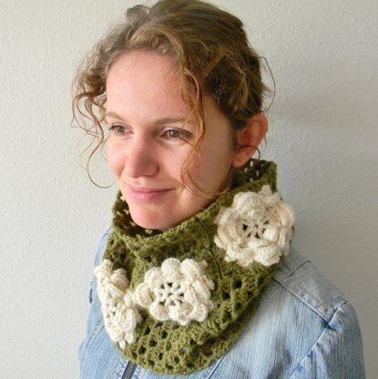 Here is a beautiful Irish Rose Cowl design that is very easy to make. It's based on granny square pattern, which most crocheters have mastered even as beginners. Three Irish Rose motifs are stitched together and the body of a cowl is built around them. As far as the length goes, you can always add or subtract a couple rows to make a desired size change.