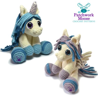This pattern contains instructions for making both a unicorn and a Pegasus. They are both a good cuddle size, measuring approximately 8 inches sitting in a DK weight yarn. However, they can be made from any weight yarn and appropriate hook for different sizes. This is not a pattern for beginners, but it is an easy pattern to follow with plenty of photos, and if you run in to any problems you will always be welcome to contact me for any extra help. This pattern is in US Terminology.
