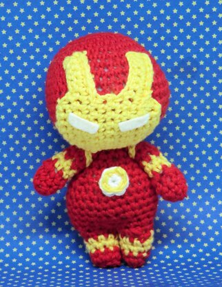 Ironman Inspired by marvel avengers By Liz Ward – Amigurumi barmy Skill level: easy Time: 3-4 hours each Size: 12x7cm Tension: Tension is not critical for this amigurumi Available in UK abbreviations This is an instant download PDF crochet pattern for Ironman Basic crochet skills required. Pattern includes chain stitch, double crochet (UK), working in the round, increasing and decreasing. Printer friendly pattern includes photos and full written instructions to create a finished doll