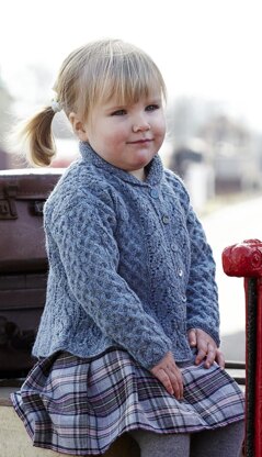 From the Knit Rowan website: Knit this childrens button up cardigan from ONCE UPON A TIME. Designed by Marie Wallin using the gorgeous Felted Tweed yarn, this girls cardigan has a pretty cable and lace pattern and moss stitch shawl collar.