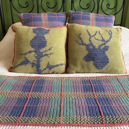 The collection is three separate patterns which can be purchased individually if you'd prefer not to make the whole collection; Tartan Cushion, Stag or Thistle Cushion and Tartan Bed Runner.