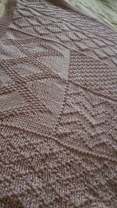 An innovative, all in one, textured blanket design incorporating different textures in the same row. Pattern is written and charted with multiple pictures to support understanding of placement. As blanket is written by stitch and row all weights of yarn are suitable, although yardage is given for DK Weight.