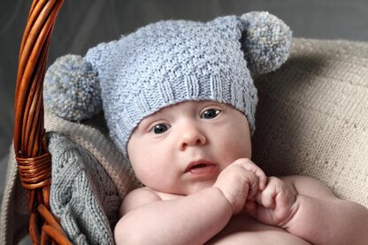 Textured Square Hat with Pompoms