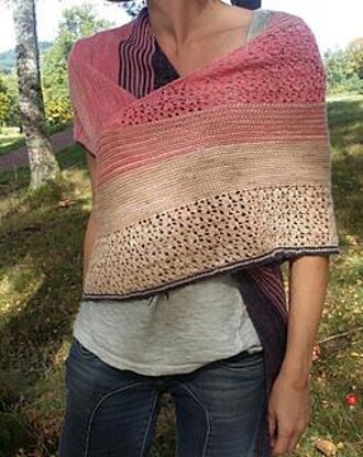 wanted to have a little fun for this shawl, so I took 3 skeins of my girlfriend Lisa (nbknitting), and I built this big shawl, with a little lace, a little stripes, for not to be bored. You can associate the colors you want 1, 2 or like me 3, have fun as much as possible.
