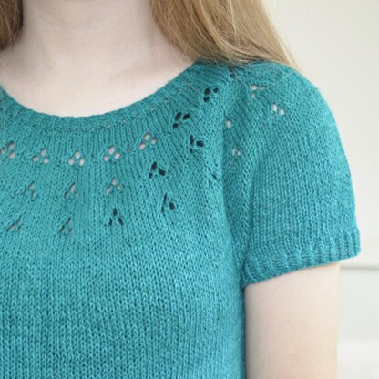 A soft and feminine tunic with sweet lace patterning in the yoke and short sleeves. Jade Clover is worked seamlessly in the round top down in one piece, and with neat twisted rib edgings. With its subtle A-line shaping, this tunic is not only flattering on all sizes. Additionally, it’s also very easy to shorten to tee length, or lengthen to a dress. Not only tips for these modifications as well as for a more flared out body, but also associated yarn requirements are included!