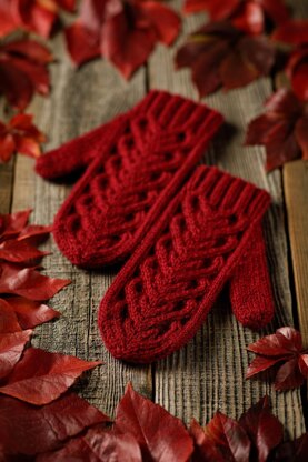 The cables spread over the entire top of the mittens, starting at the cuff, and ending at the fingertips. The cuff is not large and quickly draws the attention to the cable curves.