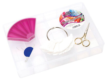 Treat yourself to this pack of essential accessories for all cross stitchers. Includes a thread organiser plastic box, thread bobbins on a metal ring, 3-in-1 needle threader, needle organiser box and a high quality pair of embroidery scissors.\n