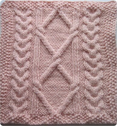 One in a series of knitted blocks, suitable for throws, cushion covers etc. Finished square measures approx. 12 inches, size will depend on your tension and yarn used.